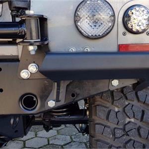 Coppia protezioni cantonali in acciaio verniciato nero, con trattamento anti-corrosione, specifici per LR Defender 110.