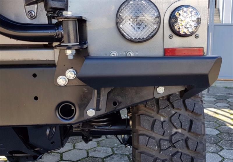 Coppia protezioni cantonali in acciaio verniciato nero, con trattamento anti-corrosione, specifici per LR Defender 110.