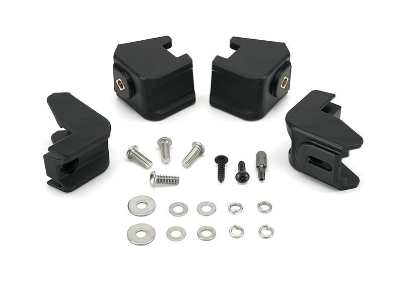 Le luci sono montate tramite quattro staffe di precisione che si adattano perfettamente alla griglia standard del veicolo. Realizzate in materiale composito ad alta resistenza e resistente ai raggi UV, le staffe sono completamente resistenti alle intemperie e agli agenti chimici. Il kit include anche un cablaggio per due lampade e dispositivi di fissaggio antifurto per un'installazione facile, sicura e duratura.